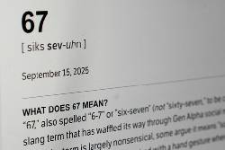 Dictionary.com's word of the year isn't even really a word. It's the viral term “6-7” that kids and teenagers can't stop repeating and laughing about and parents and teachers can't make any sense of.
