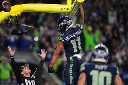 After corralling an 11-yard pass from Darnold in the end zone to give the Seattle Seahawks a 14-0 lead on the Houston Texans late in the first quarter , Smith-Njigba effortlessly and gracefully slam-dunked the football on the crossbar of the goalposts. He drew an unsportsmanlike conduct penalty in the process, but helped guide the Seahawks to a 27-19 win on Monday night.