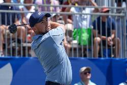 Zach Bauchou had the event's first hole-in-one since 2024 on the par-3 third hole. He and Sam Stevens finished with a 64 and were eight shots behind.