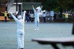 “I get up a 5 a.m. anyway,” he added. “I come to the park about 6 and do a round of walking ahead of the Radio Taiso session. Most of the faces are familiar, and coming here and getting together with them is also one of the things I look forward to.”