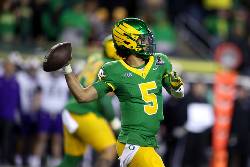 EUGENE, Ore. (AP) — Dante Moore threw four touchdown passes and ran for another score and No. 5 Oregon beat No. 19 James Madison 51-34 on Saturday night in a College Football Playoff opener.