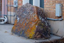 People give different versions of how the rock found its way to the church meetinghouse some 80 years ago. Stories involve a group of people muscling the hefty rock into a pickup and hauling it to town.