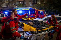 In the heart of the Ukrainian capital, rescue crews pulled more than 20 people out of a 17-story apartment building as flames engulfed the sixth and seventh floors. Five people were hospitalized, while others received first aid at the scene, authorities said.
