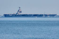 The Ford's carrier strike group, which includes squadrons of fighter jets and guided-missile destroyers, transited the Anegada Passage near the British Virgin Islands on Sunday morning, the Navy said in a statement.