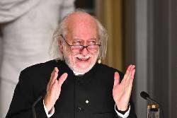 Krasznahorkai's lecture, which he gave in Hungarian, ranged across topics such as old and new angels, human dignity, hope or the lack thereof, rebellion and his observations of a clochard — or tramp — on the Berlin subway.