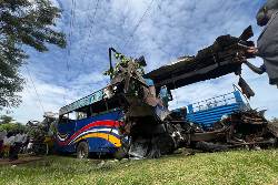 Fatal road crashes are common in Uganda and elsewhere in East Africa, where roads are often narrow. Police usually blame such accidents on speeding drivers. In August, a bus carrying mourners back home from a funeral in southwestern Kenya overturned and plunged into a ditch, killing at least 25 people and injuring several others.