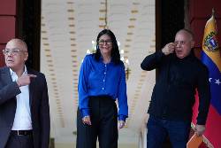 Flanked by her brother and National Assembly President Jorge Rodríguez, as well as hard-line Interior Minister Diosdado Cabello, she took no questions. Cabello, she said, was coordinating the prisoner releases, which have drawn criticism for being too slow and secretive.