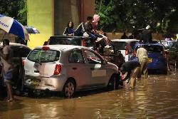 Heavy rain began on Friday and continued overnight, submerging vehicles and forcing motorists in some areas to wade through hip-high water to reach higher ground.