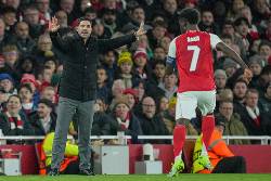 “We are so pleased what we have seen, the energy we created in the stadium, what the team transmit, the energy that we bring, the quality we play with, it’s incredible,” Arteta said. “We have to maintain that because it’s still very early and unfortunately every three days you have to do it — that’s the beauty of it as well.”