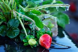 In Plant City, which bills itself as the winter strawberry capital of the world, growers used sprinklers to spray strawberry plants and ornamental plants with water that formed a protective ice as the overnight temperature went as low as 28 F (minus 2.2 C). The ice kept the plants' temperatures from going below freezing. Plant City is about 20 miles (32 kilometers) east of Tampa.