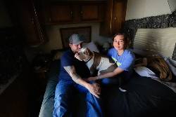 She said she barely had a chance to gather her dog, Chip, and a single bag of belongings before firefighters urgently helped her walk down her wheelchair ramp and grab a rolling walker from her van outside.