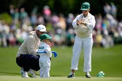 It was hard to tell which of the kids was more of a hit at Wednesday's family-friendly Par 3 Contest — Remy being carried by Meredith in a baby wrap or Bennett knocking the ball around with a blue toy club.