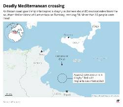 ROME (AP) — The Italian coast guard found 19 people dead and rescued 58 others after intercepting a dinghy filled with migrants that was in distress about 80 nautical miles from the southern Italian island of Lampedusa on Tuesday night.