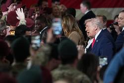 The president and first lady Melania Trump also met privately with military families. But the visit felt more like a political rally than an official visit to celebrate the U.S. armed forces. Trump's lauding of the raid that toppled Maduro came only after he called to the stage Michael Whatley, a former Republican National Committee chair who has the president's endorsement as he now runs for Senate in North Carolina.