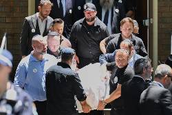 Grief overflowed as the coffin was carried out of the hall. Around the mourners, bumblebee balloons bobbed in the afternoon breeze, a reference to her family nickname Matilda Bee.