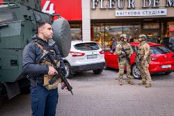 During the 40-minute standoff, a female negotiator wearing body armor and standing behind an armored vehicle used a loudspeaker to call out to the assailant, urging him: “The people are not to blame for this. Please let them go, and we will talk with you.”