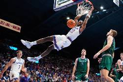 “He makes the game look easy,” Self said. “It’s not that easy. In the first half, he was playing downhill, and he played really well. He’s a good player. His poise is well beyond his years, without question.