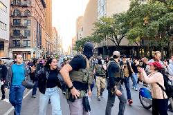 As more New Yorkers joined the fray, some of the federal agents retreated on foot, followed by jeering protesters and honking vehicles. Additional federal agents, armed with long guns and tactical gear, also arrived in a military tactical vehicle.