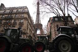Farmers drove about a hundred tractors into Paris and gathered in front of France's powerful lower house of parliament, the National Assembly, under close watch from a large number of police officers.
