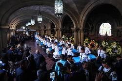 Police honored the fallen officers in a ceremony Monday, where flag-draped coffins sat in the Interior Ministry.