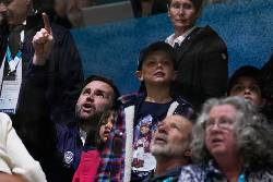 Vance stood to applaud goals scored by the U.S. women’s hockey team, which beat the Czech Republic 5-1 in the preliminary round game at the Milano Rho Ice Hockey Arena.