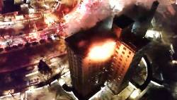 In video posted online, flames could be seen engulfing part of the top floors of the building.