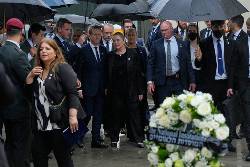 Herzog laid the wreath and two stones he had brought from Jerusalem at rain-swept Bondi Pavillion near the site of the massacre. The pavilion became on impromptu memorial in the days after the tragedy as thousands of bunches of flowers and cards were placed there.