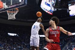The Cougars heated up from the perimeter even more after halftime. Saunders and Dybantsa each knocked down a pair of 3-pointers in the first four minutes of the second half to increase BYU’s lead to 72-56.