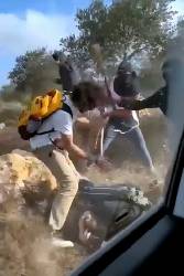 In a separate video, more than a dozen masked men were seen running down a village road alongside an olive grove, pursuing a car. One settler clubbed the car and opened the door. A passenger managed to escape and run away with the group of men running after him.