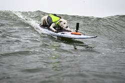 Sugar was found as a stray and over the years her love of the waves and natural talent took dog surfing to new heights.