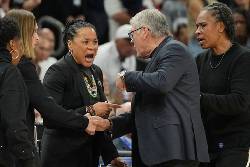 A visibly upset Auriemma went over to Staley in the waning seconds of South Carolina's 62-48 victory over his UConn team in the Final Four and appeared to chastise her before the two shook hands. Staley responded with “don't do that" while assistant coaches from both teams separated them.