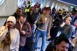 SCHIPHOL, Netherlands (AP) — More than 1,000 stranded passengers spent the night at Amsterdam's international airport as snow and ice that is pummeling parts of Europe grounded hundreds of flights and choked highways and railroads Wednesday.