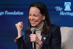 Speaking to reporters at the Heritage Foundation, a conservative think tank in Washington, Machado said she was “profoundly, profoundly confident that we will have an orderly transition” to democracy that would also transform Venezuela's self-proclaimed socialist government long hostile to the U.S. into a strong U.S. ally.