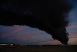 A video taken by Leirim Rodríguez shows several massive balls of flames exploding into the sky in a row, followed by large billowing clouds of black smoke.