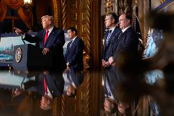 Trump was surrounded by his top national security aides, Secretary of State Marco Rubio and Defense Secretary Pete Hegseth, as he suggested that he remains ready to further escalate his four-month pressure campaign on the Maduro government, which began with the stated purpose of stemming the flow of illegal drugs from the South American nation but has developed into something more amorphous.