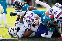 Focused on getting rid of the ball quickly and negating Jacksonville’s pass rush, Allen completed 28 of 35 passes for 273 yards and a touchdown. He ran for two scores, was sacked just once and played turnover-free football. Khalil Shakir caught 12 passes for 82 yards for the Bills.