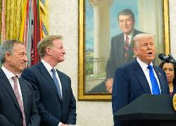 WEST PALM BEACH, Fla. (AP) — The White House said Saturday it would be “beautiful” to name the new stadium for Washington's NFL team after President Donald Trump following an ESPN report that an intermediary has told the Commanders' ownership group that he wants it to bear his name.