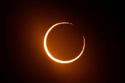During an annular, or ring-shaped, eclipse, the moon just happens to be farther away from Earth in its orbit so it doesn't totally cover the sun. Only a thin sliver remains visible.
