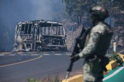 Cars burned out by cartel members blocked roads in nearly a dozen Mexican states and left smoke billowing into the air. Jalisco's capital, Guadalajara, was turned into a ghost town Sunday night as civilians hunkered down. School was canceled Monday in several states.