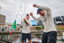 Quintin, who represented France in windsurfing at the 1988 Olympics, and Rigal had celebrated dockside on Tuesday morning after being the first double-handed yacht to cross the finish line. They spent four nights at sea and battled without wind detection instruments after some of their electronic equipment went down while crossing Bass Strait.