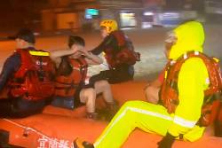 An overflowing creek flooded a village in Hualien on Tuesday. Images carried by local media showed a car being swept away by floodwater.