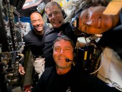 HOUSTON (AP) — Still aglow from their triumphant lunar flyby, the Artemis II astronauts put in a call to their friends aboard the International Space Station on Tuesday as they headed home from the moon.