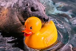 “You never expect a seal to hug a rubber ducky,” said 13-year-old Tom Smith of Boston, who was visiting with his mother and younger brother during school vacation week.