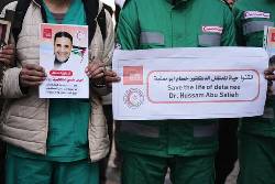 Dozens of Palestinians, including medical workers, held a protest in Gaza City on Monday to demand the release of thousands of Palestinian prisoners still being held in Israeli prisons. The protest was organized by the Palestinian Prisoners Committee outside the building of the International Committee of the Red Cross in Gaza City.