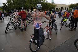 Fewer people were fully naked than usual — likely because of the cool, wet weather — but some still bared it all and rode wearing only bike helmets.
