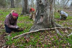 The group included friends Allie Bujakowski and Mara Swist. Bujakowski lives a mile from the park and walks her dog there. Swist lives nearby in Portsmouth, Rhode Island. They both said they wanted to get their hands dirty for Earth Day and help the conservancy, which planted a tree in Bujakowski's front yard.