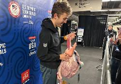 “I think my punishment is I’ve got to come back ... to skate a 1,500,” Lehman said. “That’s worse than carrying the pink backpack. I’d rather carry the pink backpack.”