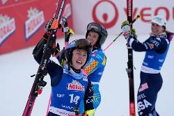 Racing again at the Czech venue of her World Cup debut as a 15-year old in March 2011, Shiffrin called it “a pretty special day” to share a GS podium with Moltzan for the first time.
