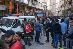 Smoke could be seen in the busy Haret Hreik neighborhood following Sunday's strike. A video circulated on social media showed dozens of people crowded around the area of the strike, which appeared to be on the fourth floor of an apartment building. Gunshots could be heard to disperse the crowds as emergency workers arrived.