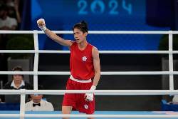 Taiwan's first Olympic boxing champion beat Thananya Somnuek of Thailand 5-0 in the round of 16 in the 60-kilogram division. That earned Lin a quarterfinal against division favorite Ayaka Taguchi of Japan.
